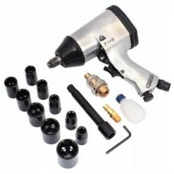 Clé à chocs pneumatique + douilles 1/2 »_x000D_Modèle: kd1420_x000D_Consommation d’air moyenne: 180 l / min_x000D_Entraînement carré: 1/2 « _x000D_Couple max: 312 nm_x000D_Virages: droite / gauche_x000D_Longueur: 8 « _x000D_Pression: 90 psi_x000D_Entrée d’air: 1/4 « _x000D_Outils pneumatiques, Clés pneumatiques, Clés à chocs