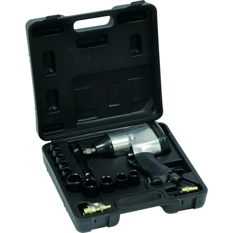Clé à choc 1/2 pouce pneumatique en valisette PVC + accessoires Réversible.