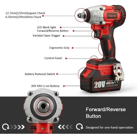 Design Ergonomique & Personnalité: 6,35mm ,12,7mm Mandrin Rapide combine les fonctions de tournevis électrique et de clé à chocs;Jeu de poignées pistolet pour une prise plus confortable et équilibrée;La lampe de travail à DEL aide à travailler dans des endroits sombres;Le commutateur de rotation vous permet de faire une rotation en avant ou en sens inverse.