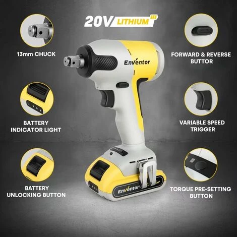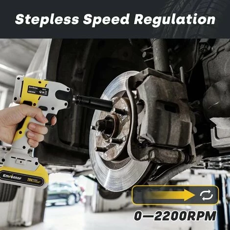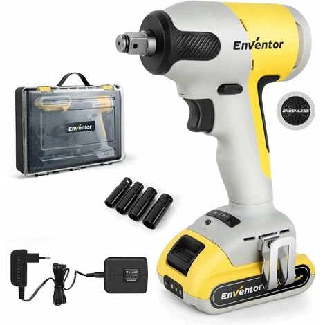 Cle A Choc Sans Fil BRUSHLESS 20V, ENVENTOR 300Nm Boulonneuse A Choc ,Mandrin 13 Mm (1/2″),avec Batterie 2,0Ah Et Chargeur, 4 Prises,Boucle De Ceinture,y Compris Lumieres LED,avec Mallette Rigide