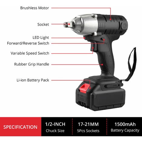 Clés a chocs électrique Sans Fil Boulonneuse 0-3200 tr/min