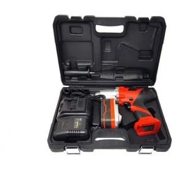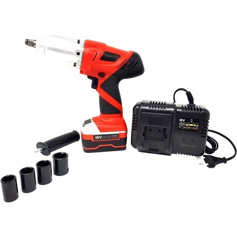 Clé à chocs 18 V sur batterie Li-ion 3.0 AH avec mandrin carré ½ ’’, couple maxi de 420Nm, vitesse maxi de rotation à vide de 4400 tr/mn.