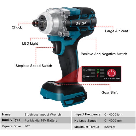 -520N.M couple élevé, interrupteur de changement de vitesse en continu.