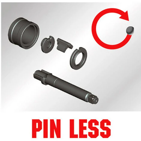 Pin Less. Recommandée pour les changements de pneus dans l’automobile et le transport. Évacuation d’air par le dessus. Sans goupille.