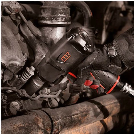 Mécanisme de frappe : Twin Hammer. Le magnésium est 33% plus léger que l’aluminium, 60% plus léger que le titane, et 75% plus léger que l’acier. La cloche et l’arrière de la clé à chocs sont en alliage de magnésium. Le magnésium absorbe 16 fois plus de chocs et de vibrations que l’aluminium. Corps en matériau composite. Modèle silencieux. Consommation d’air réduite. Rotor à 7 palettes sur ressort.