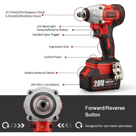 Les lumières LED sont utiles pour éclairer les zones de travail sombres. Une variété d’accessoires peut être appliquée de manière flexible à différents scénarios appropriés, et l’opération est plus précise et efficace。2 batteries remplaçable de 3,0 Ah 20V peuvent prolonger le temps de travail.PAQUET COMPRIS:1xTEENO Clé à chocs sans fil Brushless,1xPerceuse a Percussion,