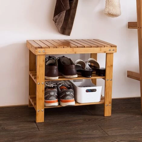 Rack à chaussures en bambou, étagère de salle de bain, banc pour l’entrée