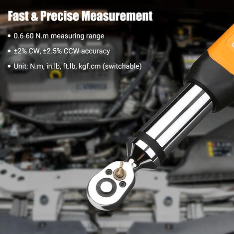 Affichage numérique : l’ écran LCD peut afficher la valeur de couple en temps réel, convertir instantanément entre quatre mesures différentes (Nm, in.lb, ft.lb, kgf.cm).