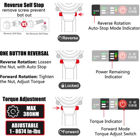 INTERRUPTEUR DE VITESSE VARIABLE ET DE DIRECTION RAPIDE – Appuyez sur la gâchette à différentes forces, vous pouvez très facilement contrôler la vitesse de votre clé de 0 à 3800 tr/min et le taux d’impact de 1 à 3600 IPM. Le bouton avant/arrière avec Secure Lock permet un perçage, un vissage et une fixation faciles.
