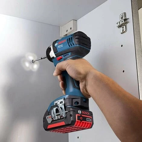 La visseuse à chocs Bosch GDR 18V-LI est la première machine équipée d’un système de batteries interchangeables. Vous pourrez choisir entre une batterie ‘Premium’ avec une autonomie prolongée ou ‘Compact’, plus légère pour un travail plus agréable. Ultra compact, cet outil sans fil Bosch offre un travail agréable grâce à une ergonomie qui facilite sa prise en main et permet de travailler dans des endroits difficiles d’accès ou en hauteur.